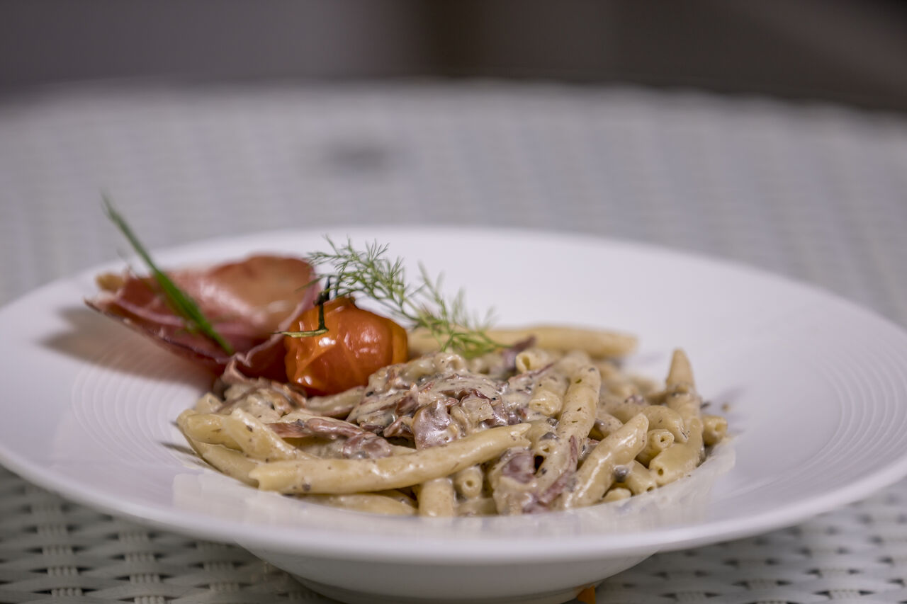 Dozvolite da vas razmazimo i uživajte u hrvatskoj i mediteranskoj kuhinji. Čak i za naše najzahtjevnije posjetitelje imamo velik broj ukusnih jela iz naših ukusnih lokalnih proizvoda i naših raznovrsnih regionalnih proizvoda. Kod nas možete uživati u našim omiljenim jelima s morskim plodovima i našim jelima s roštilja uz alkoholno piće – rado ćemo vam pomoći pri izboru. I za sladokusce imamo nešto u ponudi. Naše svježe palačinke, naše voće ili naš svježi kruh jesu i kao desert posebno ukusni. Uživajte u vašem ručku ili u vašoj večeri kod nas! Nudimo vam i besplatan pristup WiFi-ju kako biste tijekom boravka kod nas mogli surfati na internetu. Imamo zaseban dio u koji se pušači mogu diskretno povući.