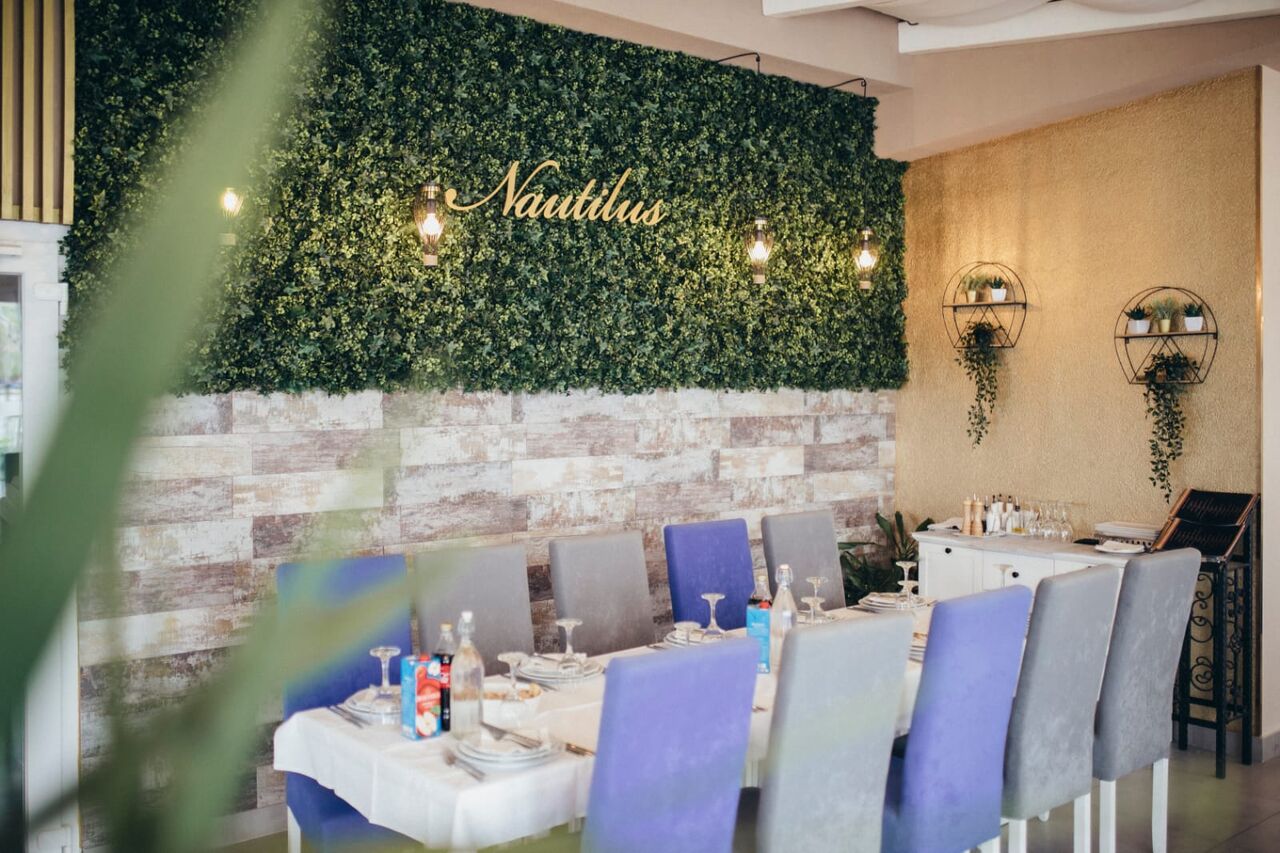 Zabavna večer s ukusom hrvatskim i mediteranskim jelima – serviramo vam svježe pripremljena jela u autentičnoj atmosferi. Želimo vam srdačnu dobrodošlicu u naš restoran Restoran & Bar Nautilus. Uživajte u slasnim jelima i autentičnom ambijentu u našem restoranu. Na našoj eksluzivnoj terasi možete upijati sunčeve zrake. Osjećajte se ugodno u našim klimatiziranim prostorijama pri bilo kojoj temperaturi.